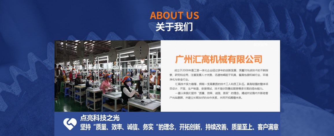 廣州匯高機(jī)械設(shè)備有限公司,成立于2008年是工貿(mào)一體化企業(yè)經(jīng)過多年的創(chuàng)新發(fā)展,憑著對(duì)先進(jìn)技術(shù)的不斷探索、研究和應(yīng)用,注重發(fā)展人才優(yōu)勢,迅速地崛起于玩具、餐具包裝機(jī)械行業(yè),環(huán)境凈化與安全行業(yè)。